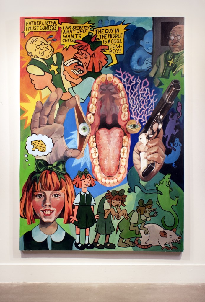 Ava Pecora is an eighteen-year-old painter and printmaker from Ashley, Ohio. She has been attending Interlochen Arts Academy for visual arts for the past four years. She has won 22 Scholastic regional awards and 1 Scholastic national award. Her work revolves around breaking norms and taking the power back, particularly involving her many years in Catholic school. Ava morphs Catholic imagery into ways that are raw to the human experience, sometimes hilarious and sometimes daunting.